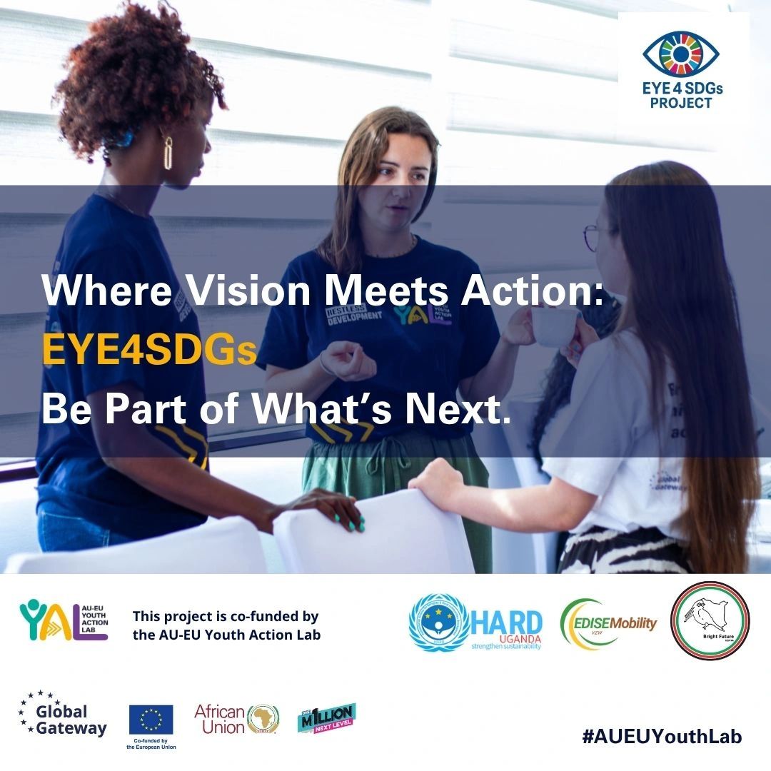 Project launch: Introducing the EYE4SDGs Project! 400 youth. 3 countries. 2 continents.1 unstoppable mission. “Enhancing Youth Empowerment for the Sustainable Development Goals”, is a bold, dynamic movement uniting 400 passionate youth from three countries, Belgium, Kenya and Uganda. With a singular mission: to bridge the gap between policy and people for a sustainable future. From the vibrant streets of Kisumu to the dynamic communities in Arua, reaching all the way to the innovative hubs of Ghent, a powerful collection of young changemakers, are rising to reshape the way Sustainable Development Goals are envisioned, implemented. We believe that to achieve the sustainable development goals, the largest demographic alive, youth, must be co-creators and implementers of change. Together with diverse stakeholder communities we aim to meaningfully engage young people, equip and empower them with world-class skills needed to achieve the SDGs globally. Young people and marginalised youth, policy makers, leaders and next generation trailblazers, YOU ARE THE ENGINE, needed towards driving transformative impact for this vision in bridging continents, cultures, and communities under a unified mission. If you are driven by leadership, eager to engage with policy, and committed to advancing the Sustainable Development Goals, this is your moment to rise and lead. HARD Uganda EDISE Mobility vzw Bright Future Kenya African Union Global Gateway European Union Oxfam Restless Development Oxfam Novib hashtag # EYE4SDGs hashtag # YouthInAction hashtag # PolicyChampions hashtag # SDGWarriors hashtag # AUEUYouthLab hashtag # LeadershipInAction hashtag # GovernanceWithYouth hashtag # HARDUganda hashtag # EDISEMobilityvzw hashtag # BRIGHTFutureKenya